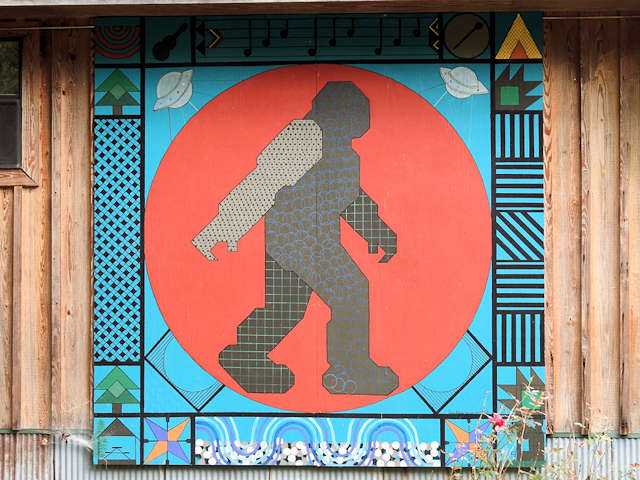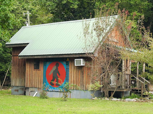 | (Big Foot, AR-65-16) NNW of Marshall, Bear Creek No.4 Township, Searcy County, AR. US65 W. 1.0 miles from jct with AR27 in Marshall, N. (turns W.) on Zack Rd. 0.8 miles, N. on Zack Rd. 3.9 miles to the quilt on the E. side of the road at 3931. Rod Corley. (N35 57.986 W92 40.136) Photos by Jack & June Schmidt 9-15-21. |