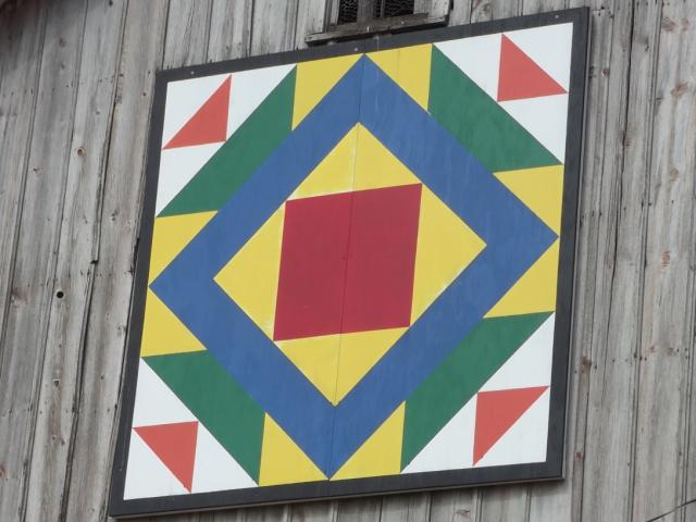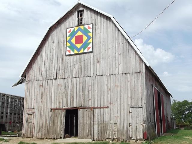 | (Mothers Favorite, IA-81-109) SE of Wall Lake, Viola Township, Sac County, IA. Needham Av. S. 1.2 miles from jct with 1st St. in Wall Lake, E. on 370th St. 3.0 miles, S. on Quincy Av. 200 to the quilt on the W. side of the road at 3588. Chedester Barn. (N42 15.199 W95 02.067) Photos by Jack & June Schmidt 7-18-12. |