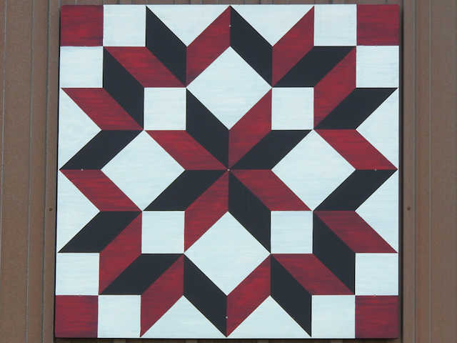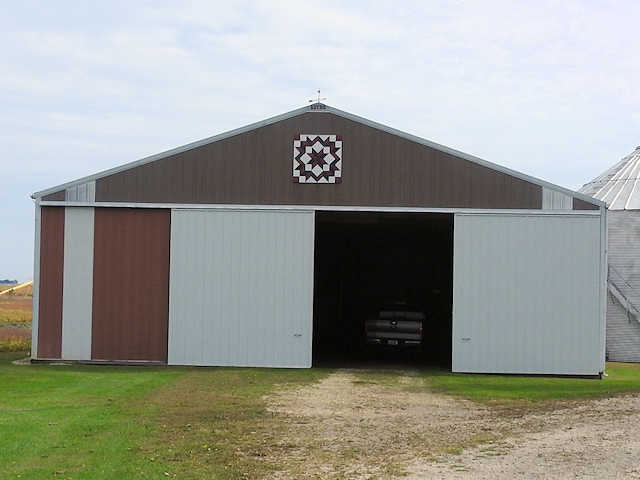 | (Carpenters Wheel, IL-06-45) NW of La Moille, Bureau County, IL. IL92 W. 4.95 miles from jct with US34 on the N. side of La Moille, N. on 2550E St. 1.7 miles to the quilt on the W. side of the road at 29428. Unknown. (N41 34.710 W89 21.811) Photos by Jack & June Schmidt 10-5-19. |