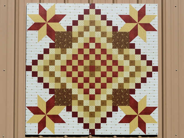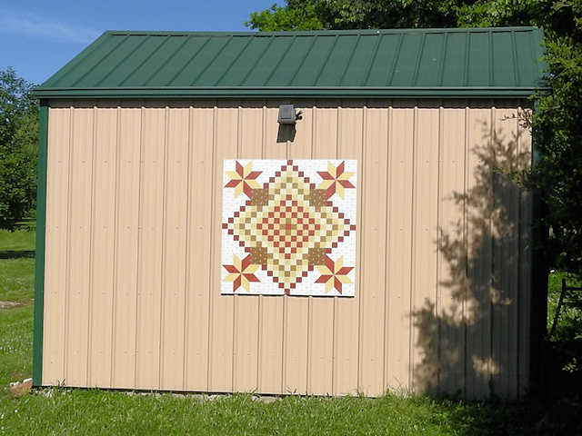 , Edwards County, IL. Court St. N. 0.15 miles from jct with Floral Av. to the quilt on the W. side of the road at 1308. James Sullivan. (N38 16.238 W87 59.700) Photos by Jack & June Schmidt 6-25-19.