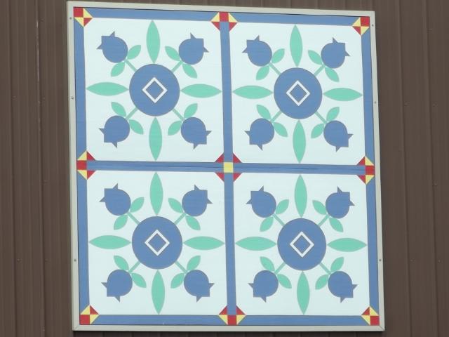 | (Blueberry Patch, IN-50-16) S. of La Paz, North Township, Marshall County, IN. US31 S. 0.8 miles from jct with US6 S. of La Paz to the quilt on the W. side of the road at 2811. Pickin Patch. (N41 26.264 W86 18.723) Photos by Jack & June Schmidt 5-12-14. |