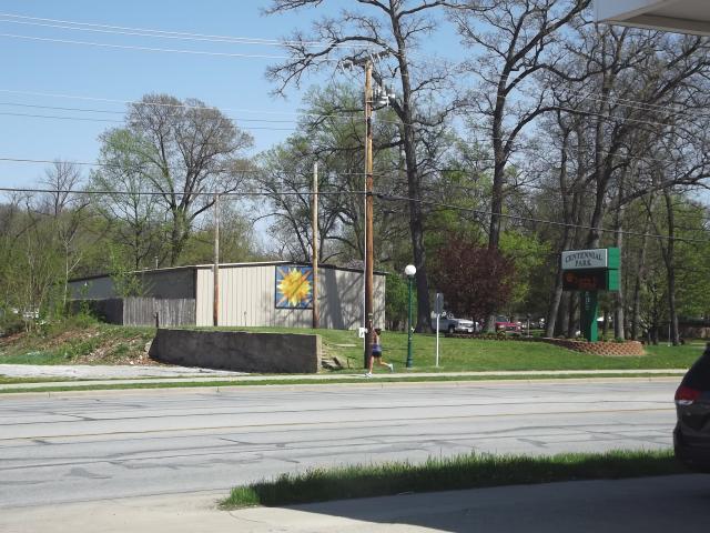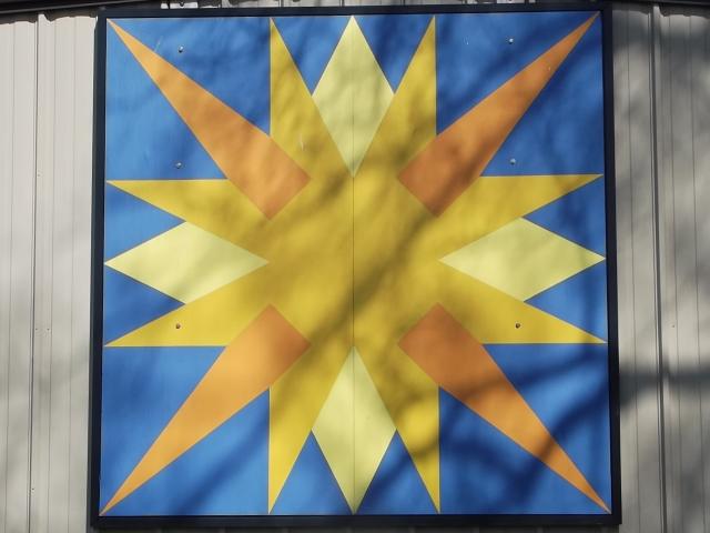 | (Summer Sun, IN-50-50) in Plymouth, Marshall County, IN. Michigan St. S. 0.5 miles from jct with US30 on the N. side of Plymouth to the quilt on the E. side of the road at 1660. Plymouth Parks Dept. (N41 21.301 W86 18.628) Photos by Jack & June Schmidt 5-10-14. |