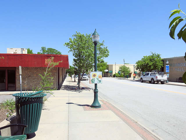 St. 150 W. of Delaware St. at 519. Tonganoxie Arts Council. (N39 06.561 W95 05.214) Photos by Jack & June Schmidt 5-12-22.