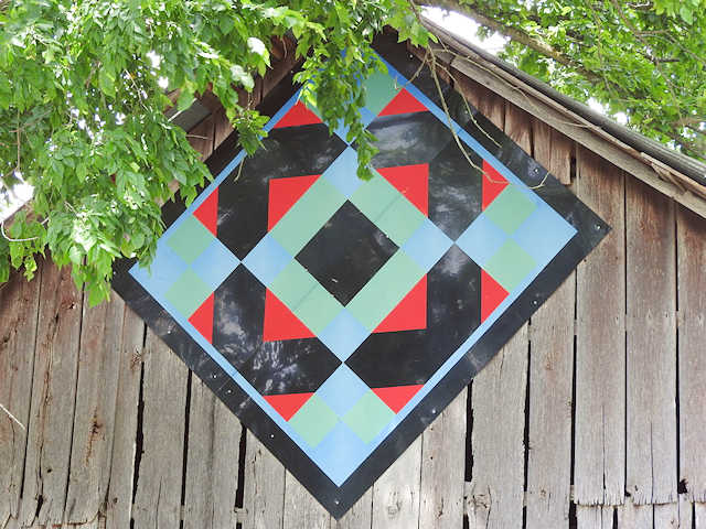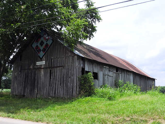 | (Arkansas Crossroads, KY-50-17) E. of Munfordville, Hart County, KY. US31W SE (curves SW) 1.05 miles from jct with Union St. in Munfordsville, NE on KY88 (Hardyville Rd.) 1.3 miles to the quilt on the SE side of the road at 1306. Janice McCombs. (N37 16.235 W85 51.829) Photos by Jack & June Schmidt 6-18-17. |
