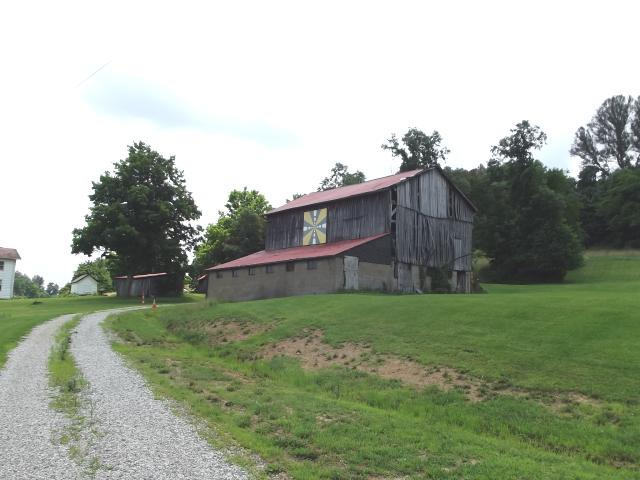 | (All Roads Lead to Athens, OH-05-20) S. of Guysville, Carthage Township, Athens County, OH. 2.8 miles from jct with OH329 on the NW side of Guysville to the quilt on the W. side of the road. Reta Robinson. (N39 15.551 W81 54.702) Photos by Jack & June Schmidt 7-4-15. |