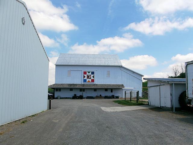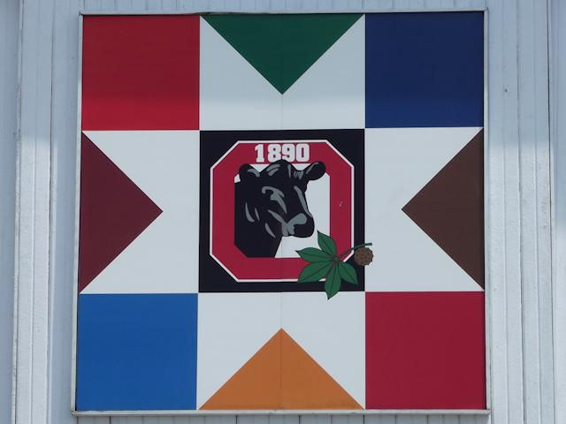 | (Bovine Star, OH-11-17) NE of Urbana, Wayne Township, Champaign County, OH. US68 N. 3.3 miles from jct with US36 in Urbana, E. on OH296 3.4 miles, N. on Ludlow Rd. 0.25 miles, E. (turns N.) on OH296) 1.3 miles, E. on Bowers Rd. 0.15 miles to the quilt on the S. side of the road at 4146. Larry & Jan Dagger. (N40 09.788 W83 39.918) Photos by Jack & June Schmidt 6-6-15. |