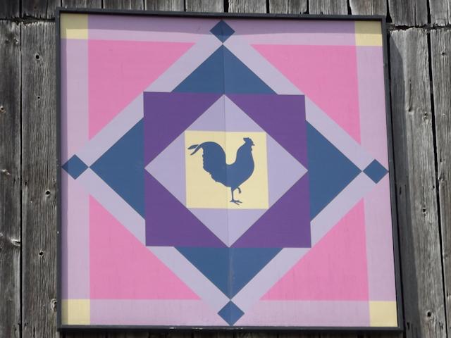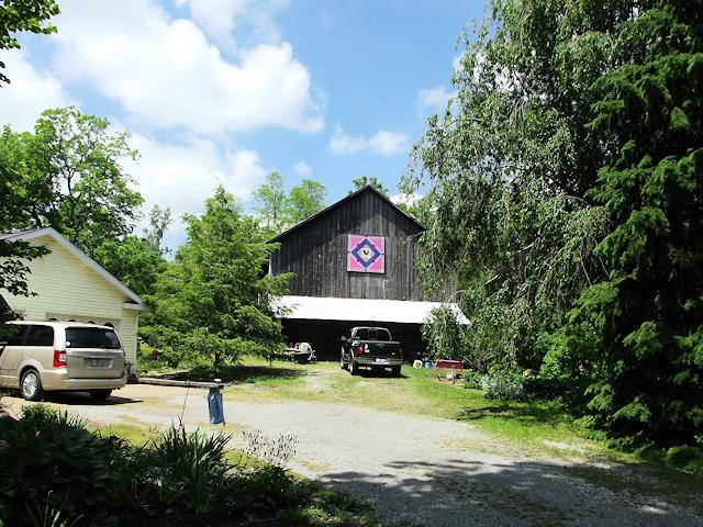 | (Huhns Early Dawn, OH-11-21) N. of Cable, Wayne Township, Champaign County, OH. Inskeep Rd. N. 0.45 miles from jct with Clay St. in Cable, E. on Black Rd. 0.1 miles to the quilt on the N. side of the road at 6108. Curt & Ginger Huhn. (N40 10.688 W83 37.423) Photos by Jack & June Schmidt 6-6-15. |