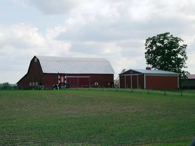 | (Broken Path, OH-11-23) ENE of Cable, Wayne Township, Champaign County, OH. Cable Rd. E. 1.1 miles from jct with Main St. on the S. side of Cable, N. on Black Rd. 0.15 miles, E. on Blue Rd. 0.6 miles, N. on Chatfield Rd. 0.25 miles, E. on Brush Lake Rd. 0.45 miles to the quilt on the S. side of the road at 7793. Michael & Donna Black. (N40 10.663 W83 35.464) Photos by Jack & June Schmidt 6-6-15. |