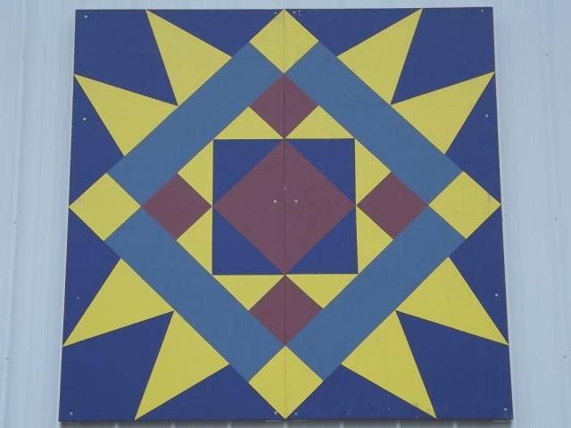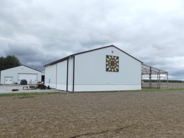 | (Thorny Crown, OH-32-40) S. of Arcadia, Washington Township, Hancock County, OH. TR254 S. 1.0 miles from jct with OH12 in Arcadia to the quilt on the E. side of the road at 5065. Dave & Terri George. (N41 05.528 W83 30.927) Photos by Jack & June Schmidt 5-15-14. |