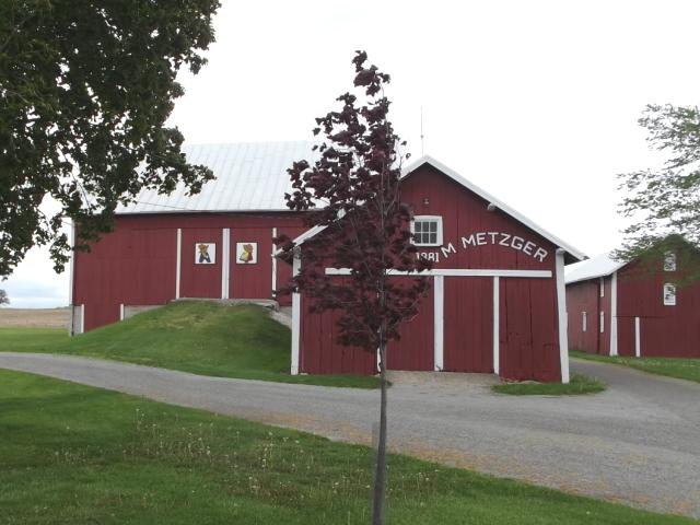 | (Sunbonnet Sue & Overall Sam, OH-32-47) SE of Arcadia, Biglick Township, Hancock County, OH. Brown Rd. (becomes CR216) E. 1.9 miles from jct with OH12 (Fremont St.) in Arcadia, S. on CR330 3.6 miles to the quilt on the E. side of the road at 7617. Sam & Mary Metzger. (N41 03.344 W83 28.578) Photos by Jack & June Schmidt 5-15-14. |
