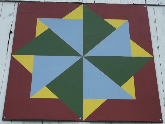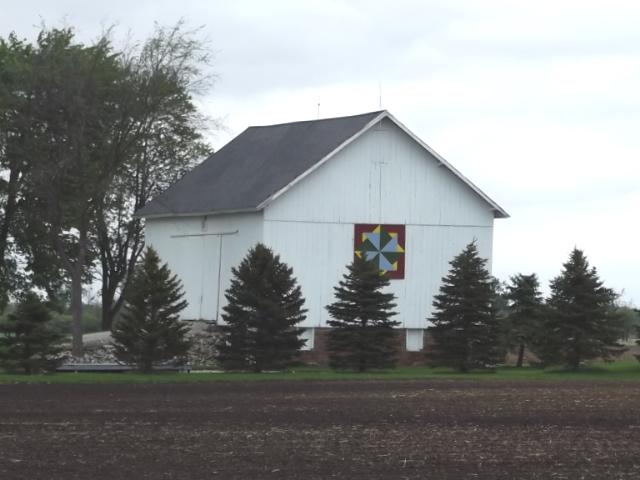 | (Tumbleweed, OH-32-48) SE of Arcadia, Biglick Township, Hancock County, OH. Brown Rd. (becomes CR216) E. 1.9 miles from jct with OH12 (Fremont St.) in Arcadia, S. on CR330 2.4 miles to the quilt on the E. side of the road at 6399. Neal & Lindsey Boes. (N41 04.393 W83 28.593) Photos by Jack & June Schmidt 5-15-14. |