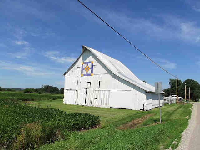 | (Tigers Eye, OH-71-39) E. of Greenfield, Buckskin Township, Ross County, OH. OH28 E. 2.8 miles from jct with OH138 E. of Greenfield to the quilt on the N. side of the road at 3100. Connie Streitengerger. (N39 21.225 W83 19.178) Photos by Jack & June Schmidt 7-16-15. |