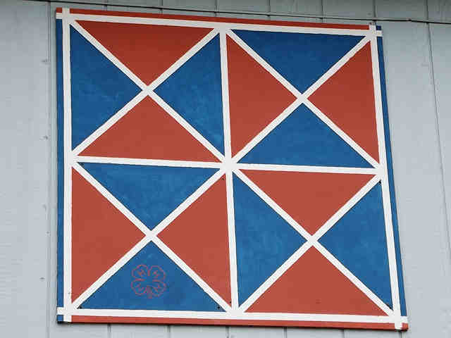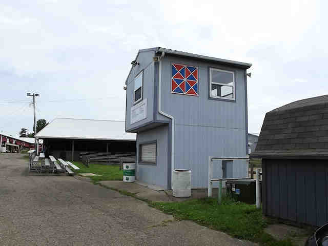 | (Big Dipper, OH-79-03) in Dover, Tuscarawas County, OH. OH800 (Wooster Av.) SE 0.45 miles from jct with OH211 (Front St.), S. into fairgrounds 0.1 miles to the quilt on the W. side of the road. Tuscarawas County Fairgrounds. (N40 30.871 W81 28.070) Photos by Jack & June Schmidt 6-24-15. |