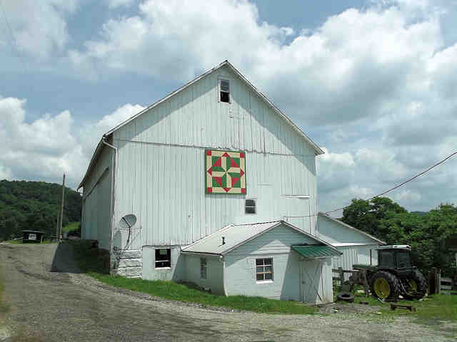 | (Framed Star, OH-79-28) S. of New Philadelphia, York Township, Tuscarawas County, OH. Broadway St. (becomes Oldtown Valley Rd.) S. 3.0 miles from jct with US250 in New Philadelphia to the quilt on the E. side of the road at 2655. Terry & Sharon Stocker. (N40 26.411 W81 27.750) Photos by Jack & June Schmidt 6-26-15. |