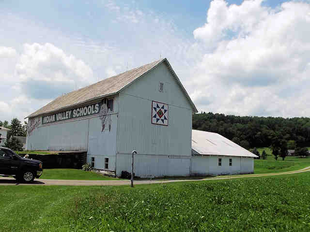 | (Variable Star, OH-79-33) N. of Tuscarawas, Warwick Township, Tuscarawas County, OH. OH418 N. 2.05 miles from jct with Cherry St. in Tuscarawas to the quilt on the W. side of the road at 3970. Phillip & Cindy Knisely. (N40 25.464 W81 24.477) Photos by Jack & June Schmidt 6-26-15. |