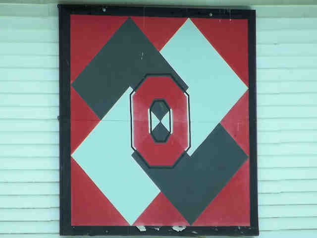 | (Card Trick, OH-79-40) E. of Stone Creek, Jefferson Township, Tuscarawas County, OH. Williams Lake Rd. NE 0.4 miles from jct with Bridge St. (I77 exit 73) E. of Stone Creek to the quilt on the NW side of the road at 4569. Don & Sue Canfield. (N40 23.847 W81 33.021) Photos by Jack & June Schmidt 6-26-15. |