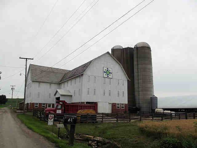 | (Mrs. Bryans Choice, OH-79-53) W. of Dover, Dover Township, Tuscarawas County, OH. OH39 SW (curves W.) 0.65 miles from jct with I77 exit 83, W. (turns S.) on Steel Rd. 0.5 miles to the quilt on the E. side of the road at 2649. Lucille Steel. (N40 31.237 W81 30.592) Photos by Jack & June Schmidt 6-26-15. |