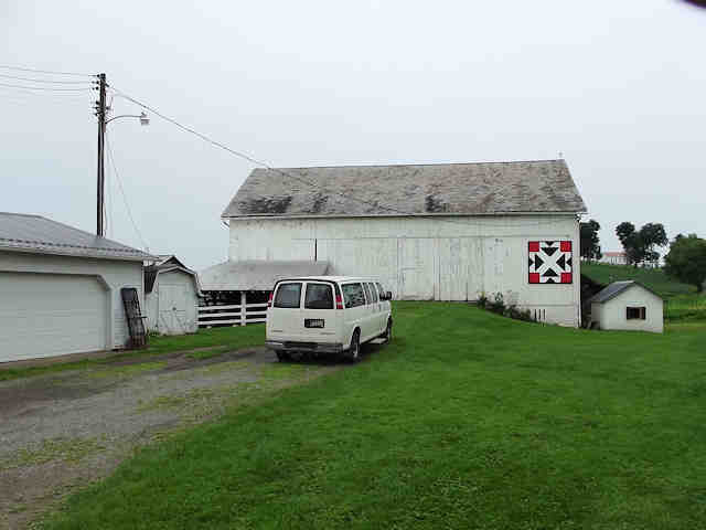 | (Arrowheads, OH-79-60) W. of Dover, Dover Township, Tuscarawas County, OH. OH39 W. 0.15 miles from jct with I77 exit 83 on the W. side of Dover, NW on OH516 4.2 miles to the quilt on the SW side of the road at 5646. Richard & Beverly Fisher. (N40 33.067 W81 33.969) Photos by Jack & June Schmidt 6-29-15. |