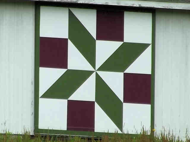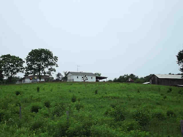 | (Clays Choice, OH-79-61) SW of Strasburg, Franklin Township, Tuscarawas County, OH. 9th St. W. 0.3 miles from jct with US250 on the S. side of Strasburg, S. (curves W.) on Winfield Strasburg Rd. 0.9 miles, continue W. on Cherry Run Rd. 1.7 miles to the quilt on the N. side of the road at 5725. Delmar & Sue Lewis. (N40 34.809 W81 33.959) Photos by Jack & June Schmidt 6-29-15. |