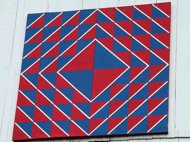 | (Windmill, OH-79-63) E. of Sugarcreek, Sugar Creek Township, Tuscarawas County, OH. Main St. SE 1.0 miles from jct with OH39 (Main St. / Dover Rd.) in Sugarcreek, E. on Sugarcreek St. 0.2 miles, continue E. on Steinbrey Ridge Rd. 1.2 miles to the quilt on the S. side of the road at 8274. Jim Lorenz. (N40 29.880 W81 36.940) Photos by Jack & June Schmidt 6-29-15. |