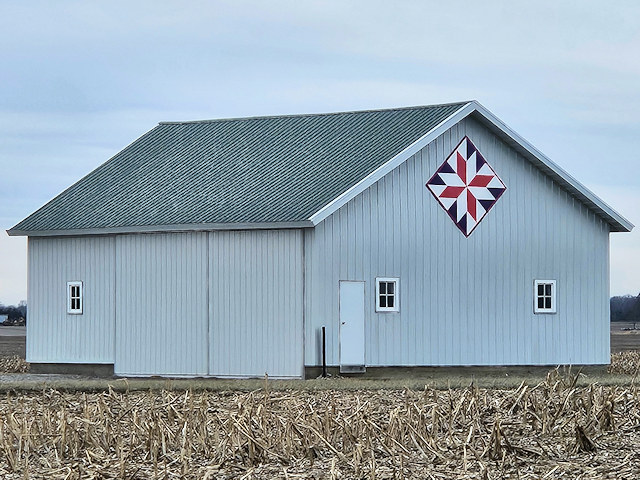 | (Untitled, IN-86-01) N. of Edon, Florence Township, Williams County, OH. Michigan St. (OH49) N. 1.0 miles from jct wit Indiana St. in Edon, W. on CR K0.15 miles to the quilt on the N. side of the road. Unknown. (N41 34.295 W84 46.317) Photos by Mark Comstock & Nevaeh Forrest 12-22-25. |