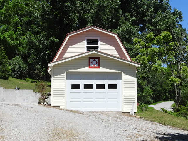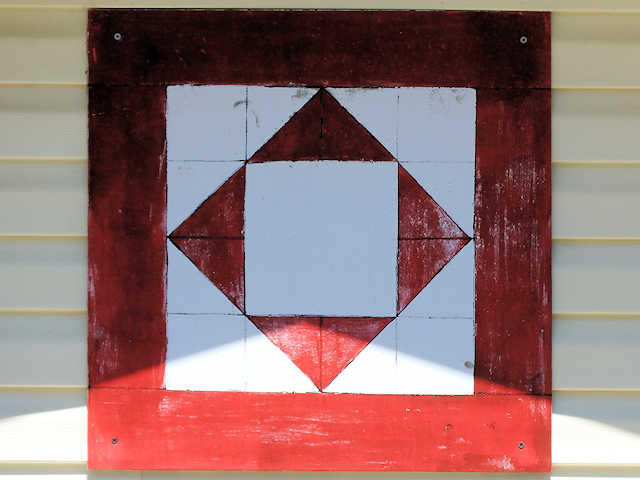 | (Untitled, TN-25-17) E. of Allardt, Fentress County, TN. TN52 E. 7.35 miles from jct with TN52 (Pennsylvania Av.) in Allardt, NW (sharp left) on Chestnut Ridge Rd. 0.1 miles to the quilt on the SW side of the road at 901. Paul & Sheila Crouch. (N36 22.483 W84 46.224) Photos by Jack & June Schmidt 6-4-18. |