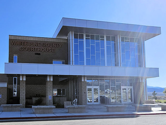 , White Pine County, NV. UD50 S. 0.9 miles from jct with Aultman St. (US50/93) to the courthouse on the E. side of the road at 1786. (N39 14.491 W114 52.026) Photos by Mark Comstock 10-15-25.
