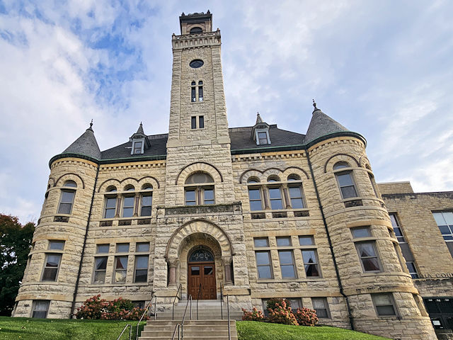 , Waukesha County, WI. At the SW corner of Main St. & East Av. (N43 00.749 W88 13.617) Photos by Mark & Clare Comstock 10-17-25.