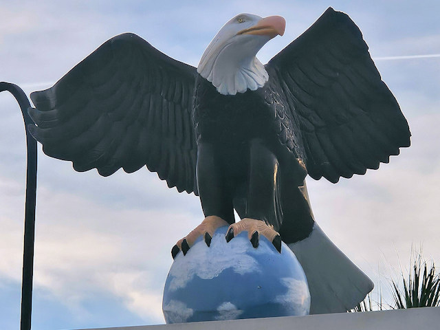 | (Eagle on Globe) W. side 13th St. 100 N. of 1st Av. on top of a small bldg. (N27 46.235 W82 39.118) |