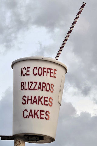 | (Milkshake Cup) at Tinas Diner W. of North Branch, Deerfield Township, Lapeer County, MI. Branch Rd. (MI90) W. 6.1 miles from jct with Jefferson Rd. in North Branch, S. on Lapeer Rd. 1.5 miles to the cup on the W. side of the road at 5743 up high. (N43 11.844 W83 18.782) Photo by Mark Comstock 8-10-25. |