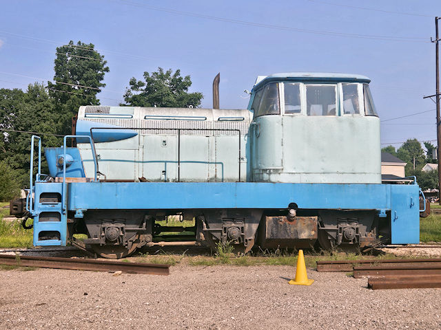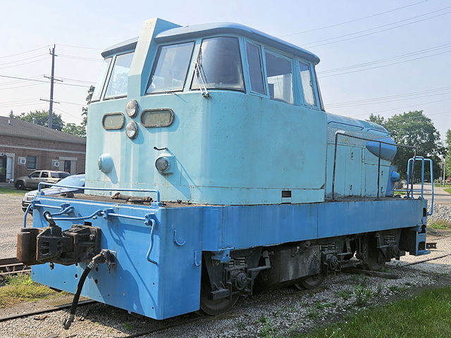 | (GMDH-3 Diesel-Hydraulic 0-6-0) in Clinton, Lenawee County, MI. Located at the shops area of the Railroad at the SW corner of Clark & Railroad Sts. Built by GM Diesel of Canada in 1960. It was an experimental locomotive with the # 275 for 275 horsepower. It has a unique automotive styling and is a really rare one of the kind locomotive. (N42 04.122 W83 58.396) Photos by Mark Comstock 8-2-25. |