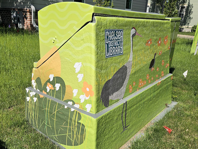 | (Utility Boxes) at Chelsea District Library in Chelsea, Washtenaw County, MI. On the N. side of Orchard St. 150 E. of Main St. at 221. Photos by Mark Comstock 6-25-25. | |||