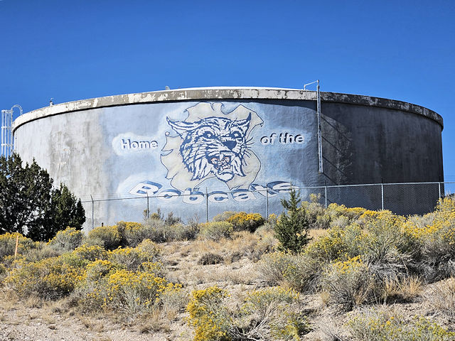 , Pine County, NV. US6 W. 0.4 miles from jct with US50/93 (Great Basin Blvd) to the tank on the S. side of the road. (N39 14.406 W114 52.599) Top 2 photos by Mark Comstock 9-17-25.