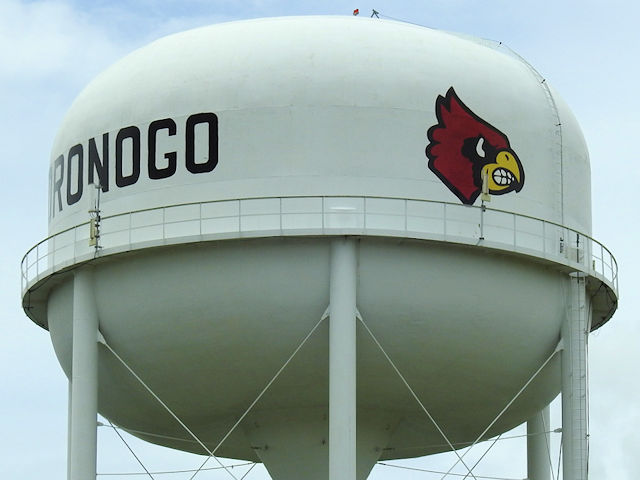 , Mineral Township, Jasper County, MO. Grant St. N. 0.75 miles from jct with Central Av. in Oronogo, E. on MO96 0.7 miles to the tower on the S. side of the road. (N37 11.885 W94 27.055) Photos by Jack & June Schmidt 6-13-25.